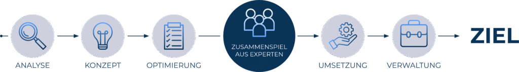 Konzept: Auf Basis der Analyse entwickeln wir ein individuelles, langfristig ausgerichtetes Vermögenskonzept, das exakt auf Ihre finanziellen Ziele abgestimmt ist.